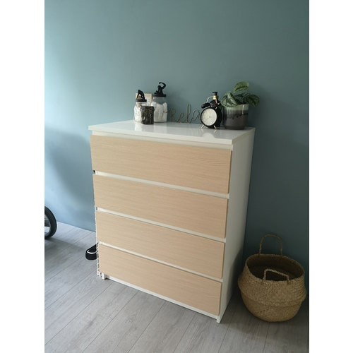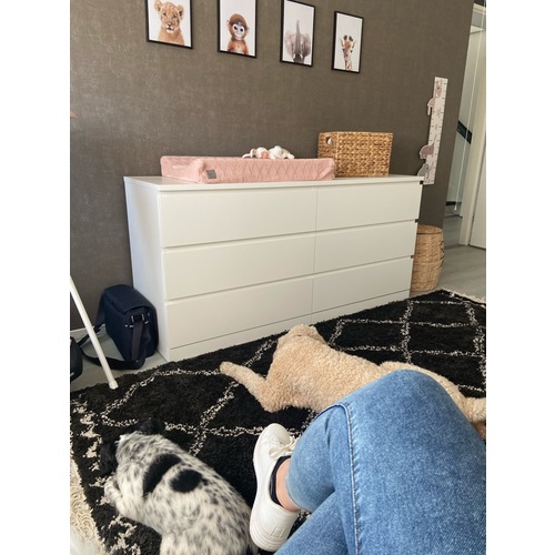 Wij hebben 2x de malm van ikea maar dan met 4 lades. De malm met 3 lades was echt veel te laag. Maar dit bevalt super 😊