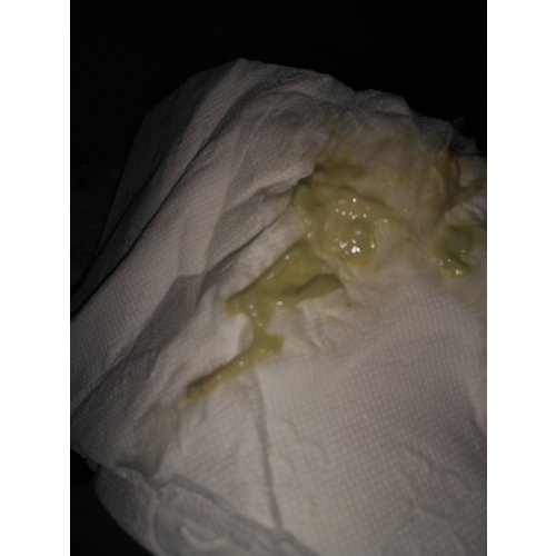 Lastig te zeggen wat het nou is. Als ik t zo zou zien, zou ik denken afscheiding. Maar daar is t te veel voor. Maar t is te geel/groen voor een slijmprop.. heb je een app nummer van de vk? Zou het anders ff bij hun voorleggen.