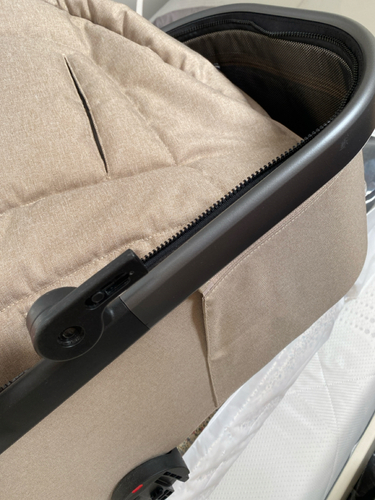 Zo ziet onze kinderwagen bak eruit. Kap kan hier dus niet af en op het zitje omdat dit druk knopen zijn