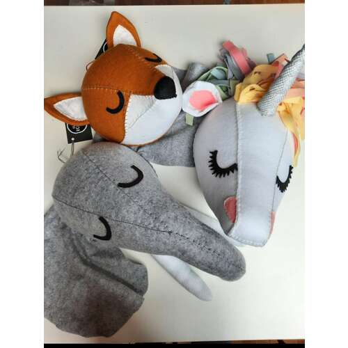 We hangen deze dieren bij het bedje en weten niet helemaal of de vos mooi gaat zijn bij de kleur.
