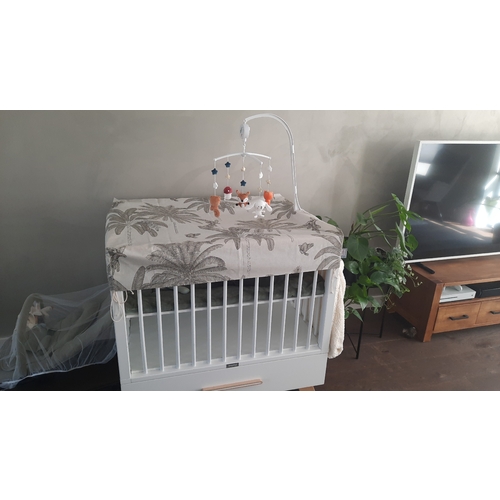 Niets hielp hier dus wij legden er een hydrofiele doek in als de baby er niet in lag. Die kun je makkelijk uitkloppen en wassen en zo lag er geen haar op het boxkleed zelf.