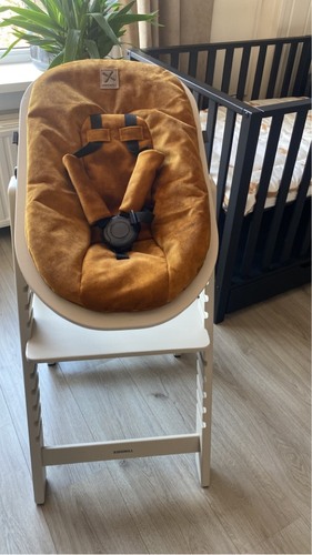 Ik heb toen de hele set compleet gekocht. Dus de stoel, zitje, newborn set en plastic tafelblad.