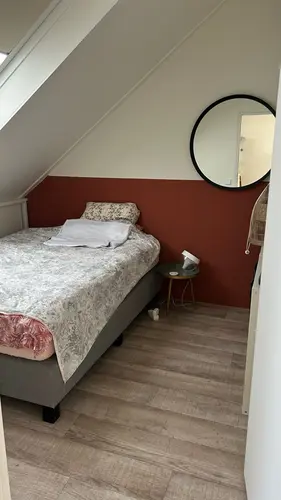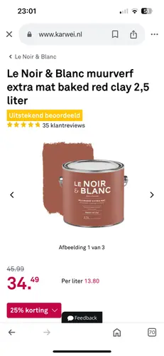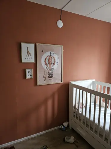 Wij hebben red earth van Farrow &ball op de muur. We hebben m laten men ...