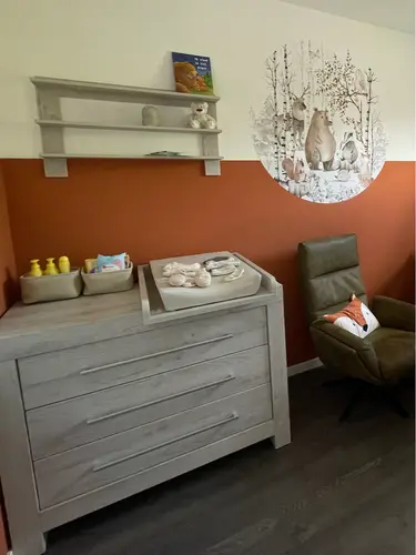 Eenmaal bevallen en weer bij zinnen realiseerde ik mij dat het voor onze dochter geen biet uitmaakte (ze kunnen eerst niet eens verder kijken dan 20cm) en mijn vriend is kleurenblind. Oh en ze heeft dik twee jaar bij ons op de kamer geslapen. Ze werd alleen verschoond in haar kamertje . Voor onze tweede hebben we de kamer nog maar even gelaten voor wat het is.