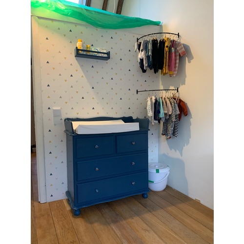 Nu is dochter 3 en de commode is al een poosje weg maar de kast is nu wel goed vol en in gebruik.