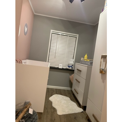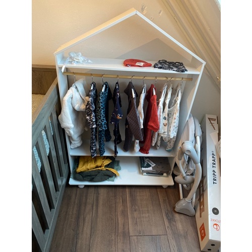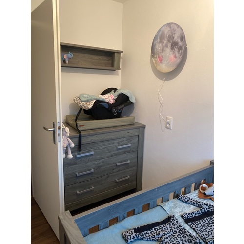 Ik heb ervoor gekozen een commode id babykamer te zetten en voor nu een hang gedeelte soort houten huisje.