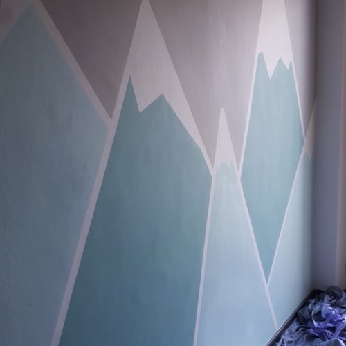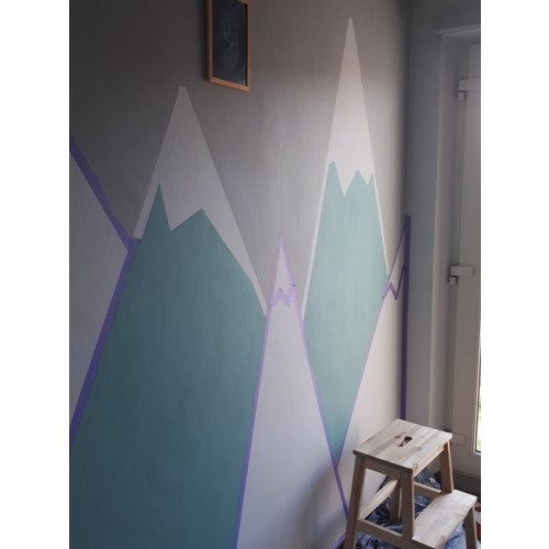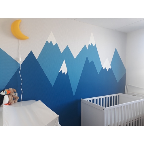 Wij hebben dit ook: we hebben een soortgelijke kleur voor de achterste bergen (vintage blue van flexa, maar dat is meer groen-blauw) en een blauwgrijs (denim drift) voor de bergen op de voorgrond. Zijn er super blij mee!!