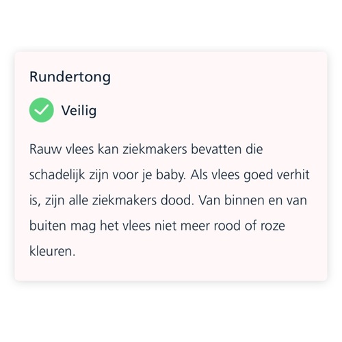 Nu gaan we bij familie met kerst koeientong eten. Zij weten nog niet dat ik zwanger ben. Dat vertellen we dan pas. Nu kan ik nergens vinden of koeientong wel of niet mag. Die tong staat eerst 24u op om bouillon te trekken en daarna wordt hij pas gebakken. Weet iemand of dit kwaad kan?