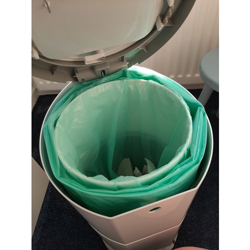 Ik heb ook deze luieremmer, ideaal als je het mij vraagt! Ik doe er wel normale vuilniszakken is maar dan wel met een trekband aan de bovenkant zodat hij goed blijft zitten als je er een luier in gooit. En qua geurtjes ruik ik niets, al doe ik de poepluiers wel altijd in een luierzakje.