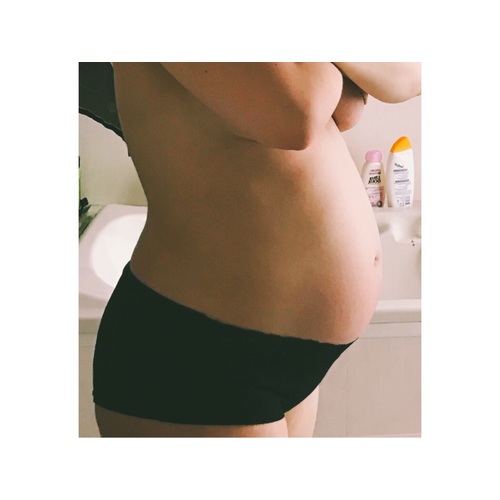 Mijn buik hangt ook redelijk laag. Eerst voelde ik me daar wat lastig om en was ik zelfs een klein beetje jaloers op vrouwen met een hogere buik, maar nu voel ik me er oké bij. Al heb ik sneller last van naden, bv. de naad van mijn zwangerschapsjeans aan de overgang naar de band. Die drukt snel in mijn buik als ik zit.