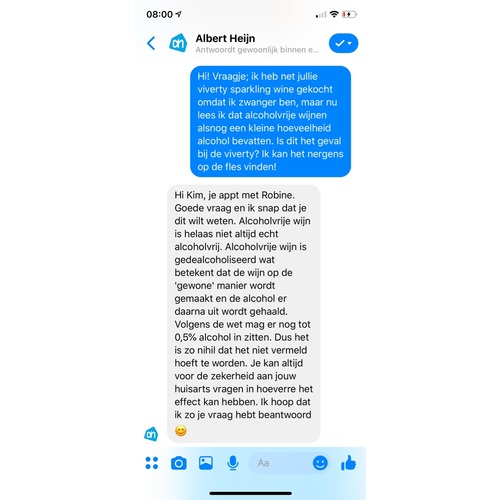 Hi all! Allicht weten jullie het al, maar alcoholvrije wijn is niet compleet alcoholvrij. Ze halen de alcohol eruit, dus er blijft een klein percentage over. Ik twijfel hierdoor nog een beetje over het drinken ervan! Aan de andere kant, een te overrijpe banaan of een glas appelsap dat te lang staat bevat ook een klein percentage alcohol. Vind het wel misleidend dat het alcoholvrij genoemd wordt maar dus niet is :(