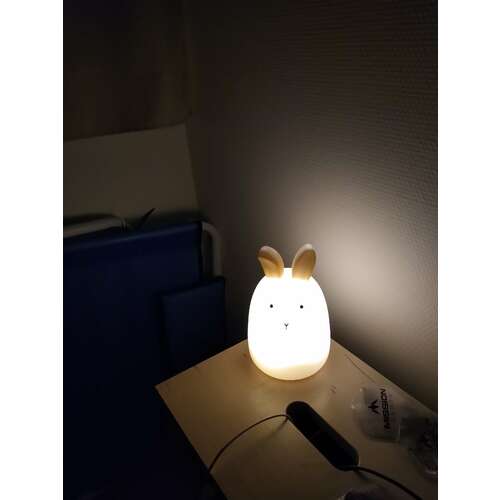 Misschien heb je inmiddels al een lampje, maar ik heb het gele konijn lampje van liewood. Twijfelde ook, maar ben er erg blij mee. Geeft net voldoende licht zonder dat partner er last van heeft