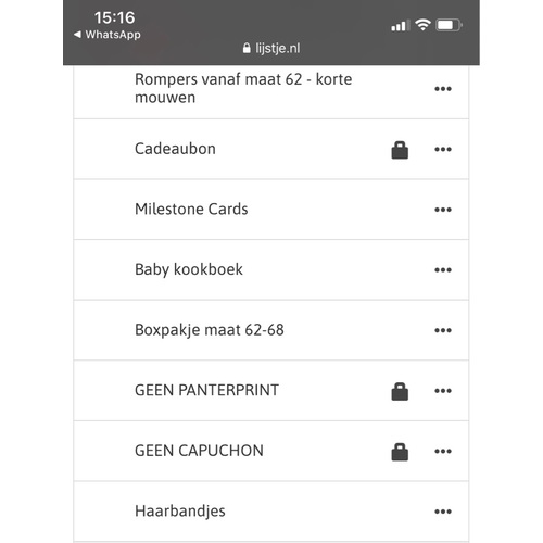 Ik krijg ook wel eens lijstjes doorgestuurd van vriendinnen, wat ik opzich wel heel handig vind. Maar wat ik echt een nadeel vind, als je dan wat later op kraamvisite gaat, dan is er al heel veel afgestreept en nog maar weinig opties.. soms ook echt boven je budget. Dat vind ik dan zelf altijd wel jammer.