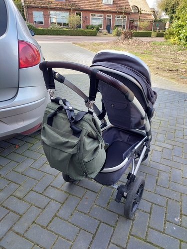 Heb je ook een foto van de tas aan de kinderwagen? Zit te twijfelen deze aa ...