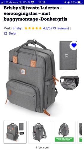 Wij hebben deze. Is nu bijna 3 jaar oud en nog in super goed staat. Mijn vriend heeft deze zelf uitgezocht en is super handig. Wij hangen hem niet aan de kinderwagen vond ik mega onhandig en mijn vriend is lang en die tas zat aan de wagen alleen maar in de weg. Daarom een rugtas gekozen