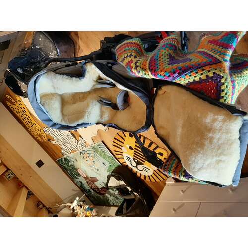 Wij hebben dezelfde voetenzak (andere kleur) en hebben deze direct op/in de verkleiner gelegd. Na een maand of 2 paste dat niet meer, hebben we de voetenzak eruit gehaald en het bovenste deel van de voetenzak als dekentje gebruikt (overigens niet ideaal).