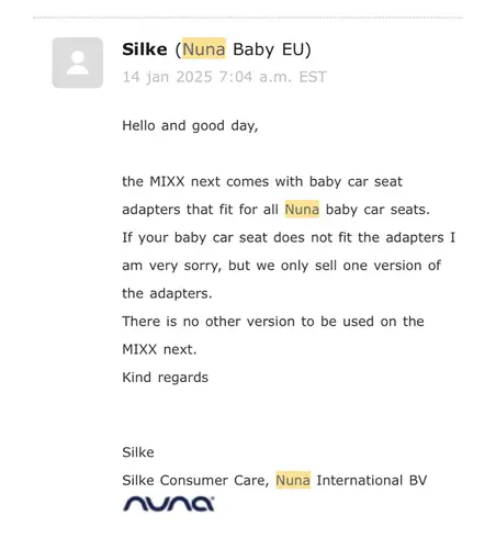 Ik had zelf een Maxi Cosi Pebble Pro aangeschaft omdat dit volgens ChatGPT zou passen (😅), maar dit paste niet. Ik heb Nuna toen gemaild en de klantenservice bevestigde dat hun adapters enkel compatibel zijn met hun eigen producten. Heel erg jammer helaas.
