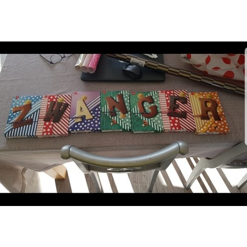 Chocolade letter puzzel met het woord zwanger? Zag ik bij vloggers op YouTube. Zag er leuk uit.