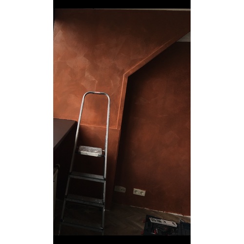 Tip: wij hadden vers gestucte muren en gingen voor een donkere metallic verf op 1 muur (woonkamer). Maar het was geen succes. Elk oneffenheidje zie je extra door de metallic. Dus als je een groot oppervlak neemt dan misschien eerst behang en dan verven of metallic met een beetje structuur nemen.