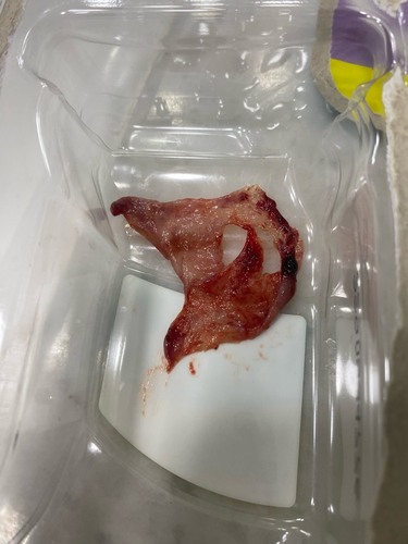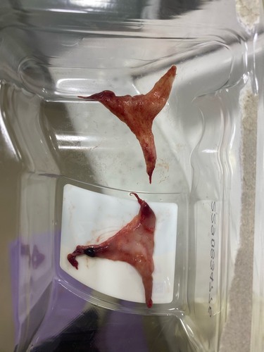 Heb je het al in een glas met water gelegd? Soms kan je het dan beter zien.. schrok wel van je foto. Maar ik durf ook niet te zeggen wat het wel is en wat het niet is😳