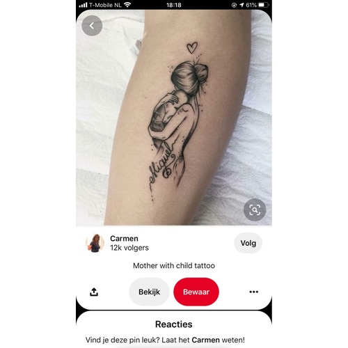 Dank je jullie sterkte met verlies❤️ en hopelijk vind je een tattoo die bij jullie en kleine past 😘