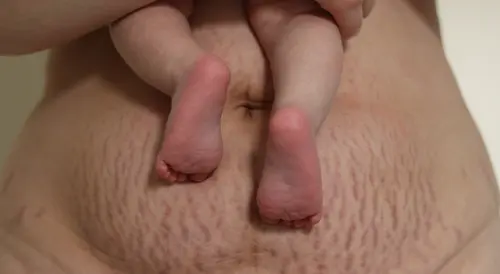 De striae op je buik staat natuurlijk helemaal symbool voor wat voor geweldigs je lijf toe in staat is. Daar zou ik me vooral op richten :).