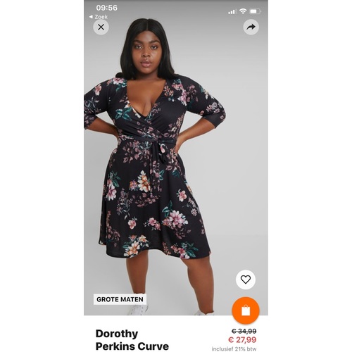 Heb zelf een prachtig jurkje van Dorothy Perkins gekocht op Zalando, zeker geschikt voor grote cupmaat. Ik heb maat 46 en cup C en heb nog wat ruimte over. Het is geen positie jurk, maar kan wel uitstekend in de 18de week gedragen worden, is uit de curvy collectie. Heb dezelfde jurk in 3 kleuren/motieven besteld.