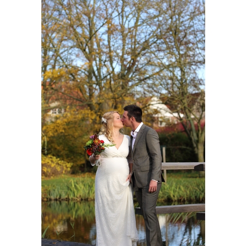 Je kan Dreamdresses eens proberen in Arnhem! Weet niet zeker of het budget 't precies redt maar die hebben wel veel in grotere maten. En zoals eerder genoemd Bonprix ook. Met 18 weken zal je inderdaad nog wel prima een niet-zwangerschapsjurk aan kunnen (oké met een beetje stretch)