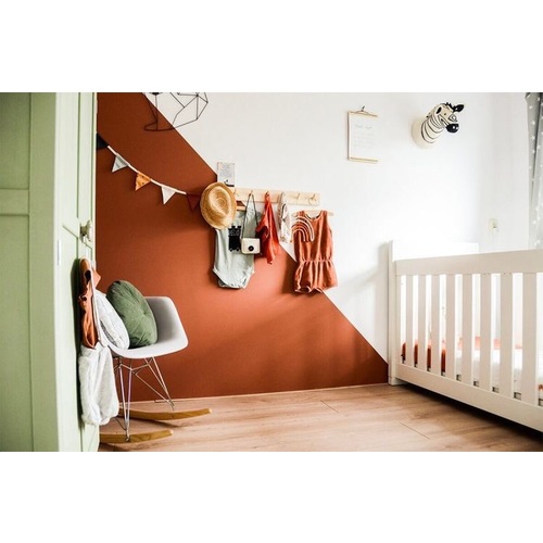 Wij hebben deze kleur in de (nu nog) logeerkamer, en houden het zo als het de babykamer wordt straks! Kleur heet Boerenbond van de Gamma.