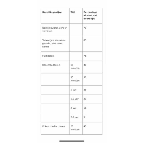 Het is vast de allerbeste optie om het niet te doen. Maar stoofvlees heb ik gewoon gegeten tijdens m’n zwangerschap. Blijft na zo lang sudderen zoals je ziet in de tabel 5% over van wat je erin gedaan hebt. In een volle pan 1 biertje met 6% alcohol, blijft er dus 0,3% van over, en je eet hooguit 1/4 portie. Dus minder dan 0,1%. Je maakt mij niet wijs dat dat schadelijk is🙈