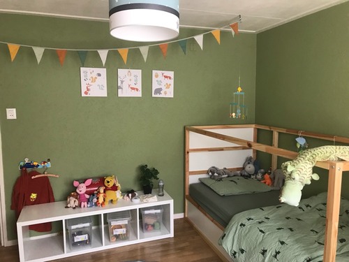 Wel een natuurkleur, alleen geen aardetint. Dit is Olive van Flexa in Histor muurverf, daardoor heeft ie iets anders uitgepakt maar wij vinden het mooier zo