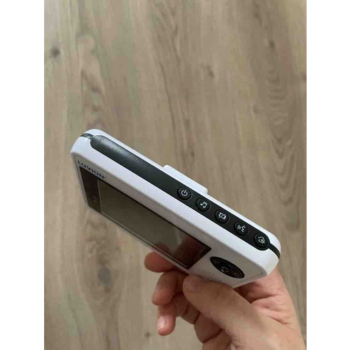 Nee hoor hier niet. Als je de middenknop (3e dus) indrukt minimaliseer je het beeld en gaat het liedje uit op babyfoon en op de kamer zelf. Als je het muziekje aan hebt en de babyfoon helemaal uit zet blijft het liedje op de kamer inderdaad wel aan.