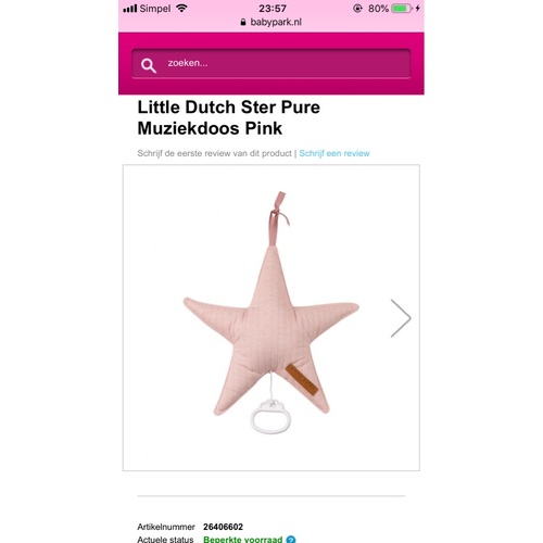 Ik heb bewust gekozen voor geen muziekmobiel op de kamer waar de baby gaat slapen dit ivm prikkels. Ik heb er wel een voor boven de box, de roze van Little Dutch. Echt een prachtig mobiel met een heel fijn melodietje. Je hebt deze trouwens ook in alleen een sterretje kwa muziekmobiel, is een stuk kleiner. Mocht de baby er heel goed op reageren dan wil ik het pas in de kamer waar de baby gaat slapen.
