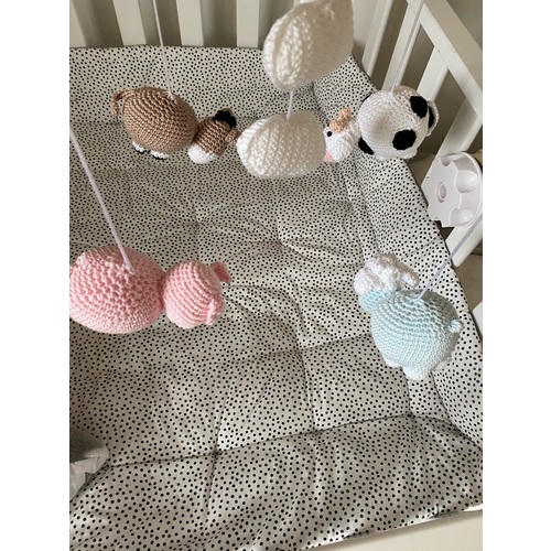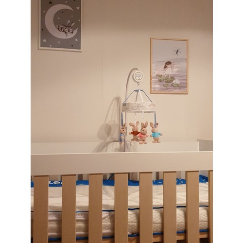 Wel een leuke mobiel boven de box ook hier, hierdoor is inderdaad het verschil tussen slapen en spelen duidelijk voor hem.