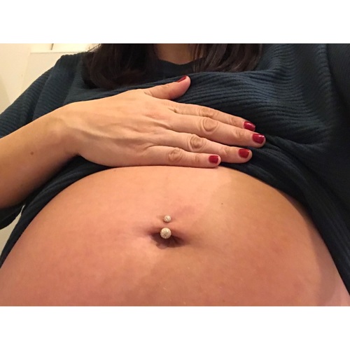 Ik heb hem niet eruit gehaald, ik heb een zwangerschapspiercing ingedaan toen mijn buik begon te groeien en het gevoelig begon te worden. Ik heb met deze piercing nérgens last van, dus waarom zou je hem eruit halen?🤷♀️