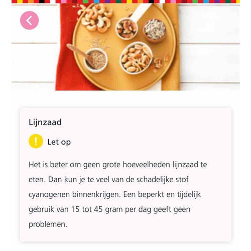 Ik eet in de ochtend 2 grote eetlepels gebroken lijnzaad door m'n yoghurt h ...