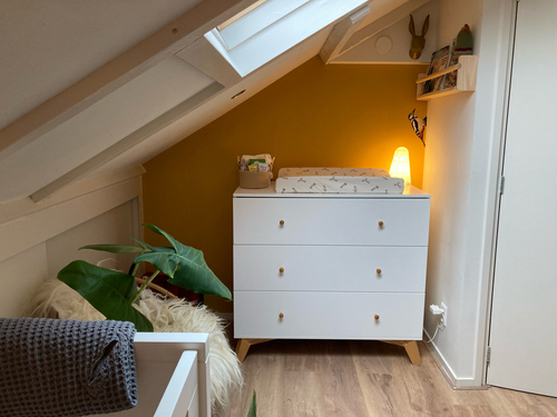 Het is een kleurtje van Histor geworden. 'Tan your hide' heet de verf. Ben benieuwd hoe het er gaat uitzien op de muur 😊