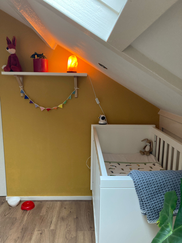 Je kan met deze foto naar de gamma en dan mengen ze exact deze kleur in een testertje. Dan kun je kijken hoe die kleur bevalt in die kamer