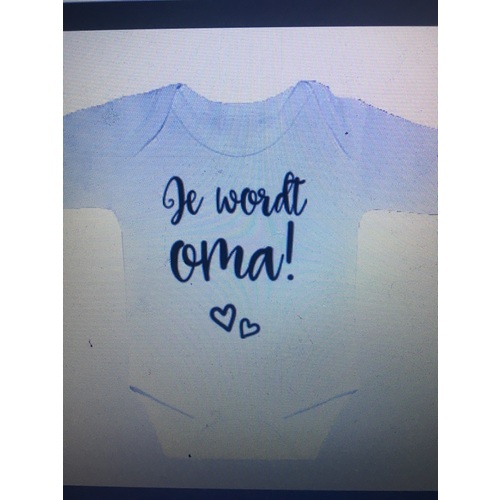 De primera verkoopt rompers met Oma’s knuffel. Die hebben wij als verrassing cadeau gedaan aan de toekomstige oma’s