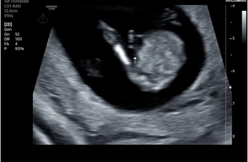 was dit met de 13 weken echo? Want dan zou dat het wel verklaren aangezien ze er een pijltje gezet hebben