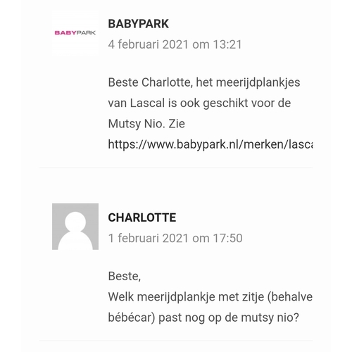 Ik wil straks voor onze tweede ook een meerijdplankje. Heb ook de Mutsy Nio gekocht. Als ik bij BabyDump zoek op “Mutsy Nio” komen de meerijdplankjes van Kidsriver erbij te staan... passen die ook niet?