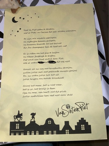 Wij hadden het in de Sinterklaas rijm gedaan van mijn moeder zo leuk die gezichten toen馃榿