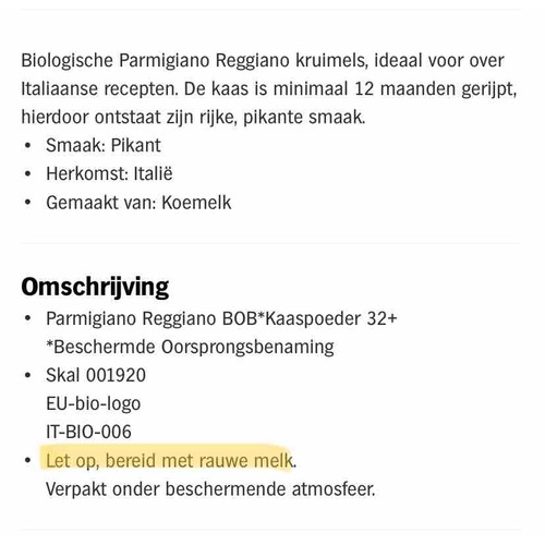 Meestal is parmezaan gemaakt van rauwe melk (check label). Maar indien opge ...