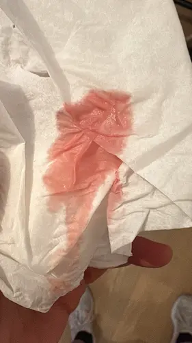 Aan de hand van de foto is echt niet te zien wat de oorzaak van de bloeding is. Er zit niets anders op dan af te wachten. Bij zorgen bel je je gynaecoloog.