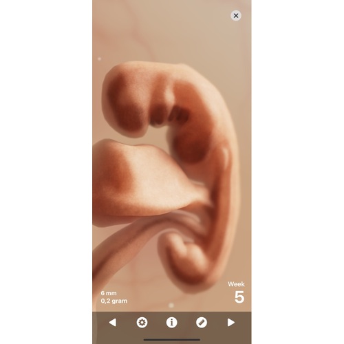 Bij mij leek het op een mega dikke doorschijnende druif en zag ik iets inzitten (was 8weken)