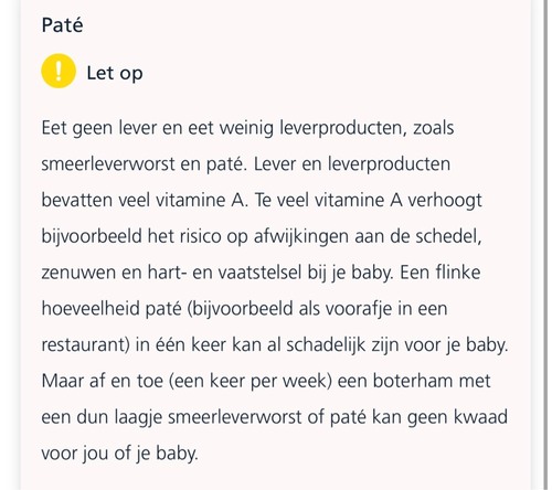 Paté word afgeraden vanwege het hoge gehalte vitamine A, niet vanwege een b ...