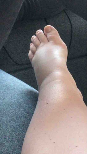 Mijn linkervoet was meer gezwollen dan rechts dat er een vochtblaar is ontstaan en deze kapot gesprongen is waardoor ik nu met een infectie zit.