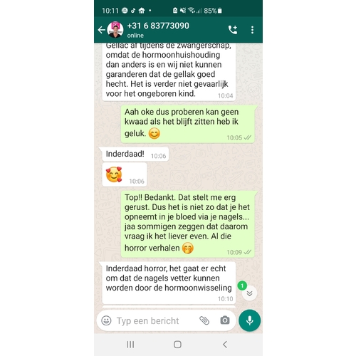 Ik lakte ook altijd met Pinkgellac, maar ik ben er sinds ik weet dat ik zwanger ben uit voorzorg mee gestopt. Het blijft toch een chemisch proces namelijk, dan maar 9 maanden wat minder mooie nagels🤭😁