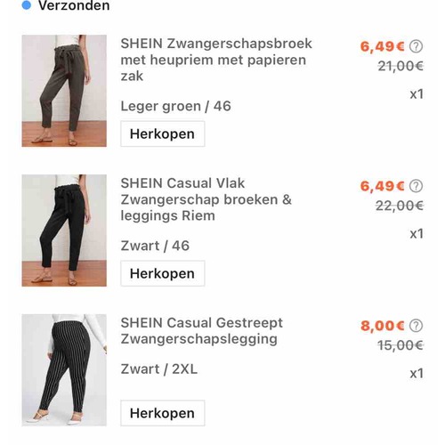SHEIN binnen 1/2 weken in huis ik heb ze allemaal een maatje groter besteld dan dat ik moet en ze zitten nog erg ruim maar wel lekker. Sommige maten was dat de Max sommige waren nog groter verkrijgbaar ik vind ze voor die prijs geweldig