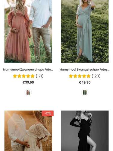 Mumsmooi heeft een hele categorie zwangerschap fotoshoot jurken met maten tot XXL zag ik